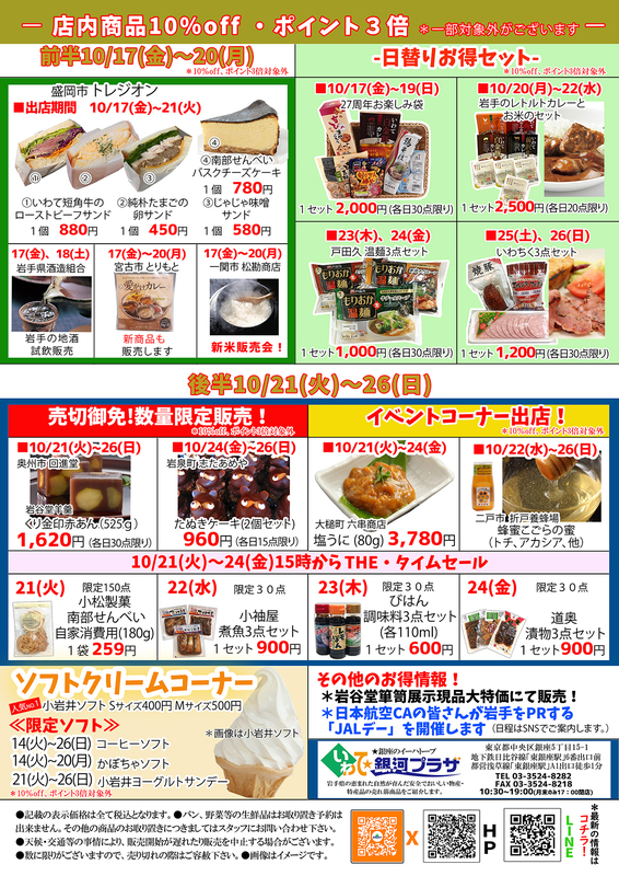 【東京都中央区】いわて銀河プラザ「27th感謝祭」開催中!(10月26日まで)