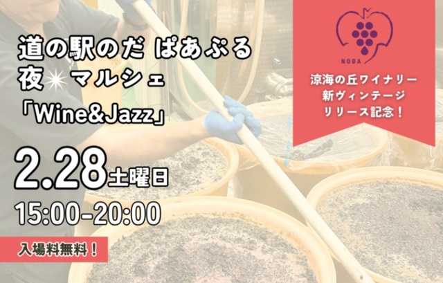 道の駅のだ ぱあぷるにて、ワインとジャズを楽しむ一夜限りのイベントが開催されます!