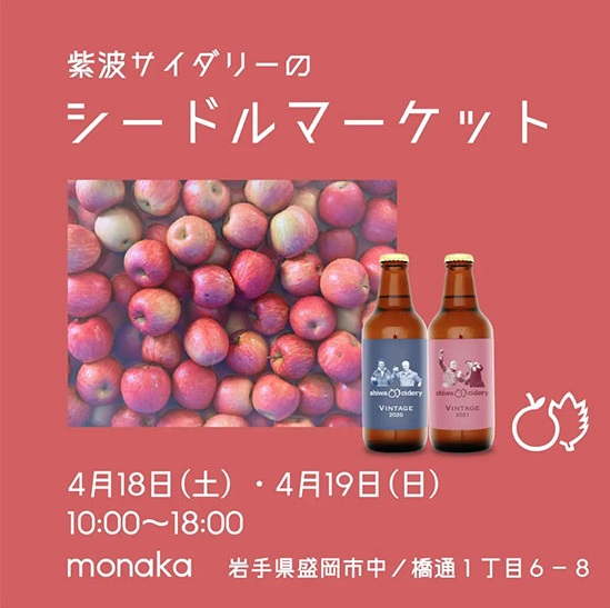 全国でも数の少ないサイダリー(りんご専用の醸造所)の一つ「紫波サイダリー」が期間限定でmonakaに出店します!