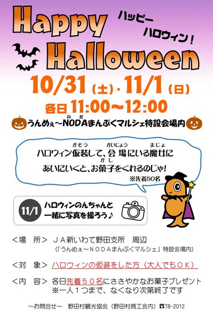 “ハロウィン仮装で「トリックオアトリート!」・先着50名様にお菓子のプレゼント(11:00~12:00)”も予定されていますよ♪