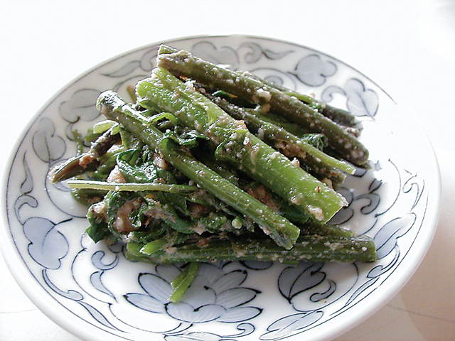 葉の形から「モミジガサ」とも呼ばれる、人気の高い山菜です。生でも食べることはできますが、食感が残る程度にさっとゆで、おひたしや和え物に。葉は天ぷらにすると、上品な味わいが楽しめます。独特のほろ苦い風味を生かすのが、おいしい食べ方です。