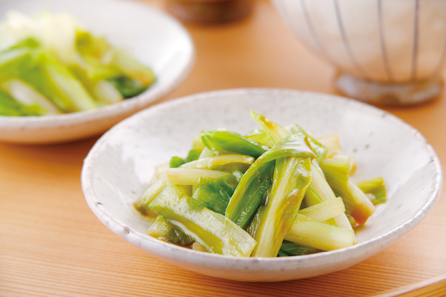 山菜の中では味や香りにクセがなく、どんな料理にも合うのがいいところ。やわらかい若葉は翡翠のように美しい緑で、さっと茹でたり、炒め物にしていただきます。成長したものは白い茎だけを使い、ぬめりを生かしてあまり火を通しすぎず、シャキッとした歯ごたえを楽しみます。