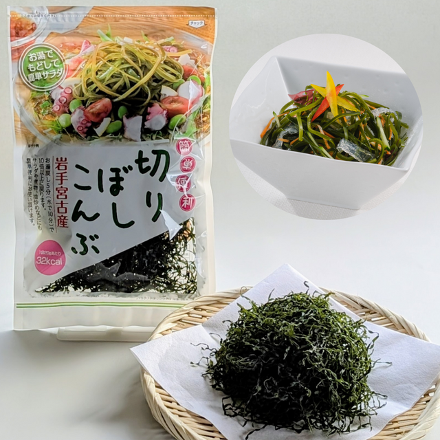 岩手県宮古産 切りぼしこんぶ(岩手県食料品水産加工業協同組合) | 宮古市 | 「食べる昆布です」 岩手県宮古沖のきれいな海で育った昆布を湯通しし、千切りにして乾燥しました。お湯で約5分戻すと、緑が... |