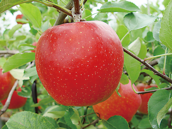 盛岡市の郷土芸能「さんさ踊り」から名付けられた品種。8月下旬頃から出回る早生種のリンゴです。果皮は鮮やかな紅色で果肉は白くしっかりしており、200~250gとやや小ぶり。甘味と酸味のバランスが良く、口の中に広がる果汁の風味も豊かです。